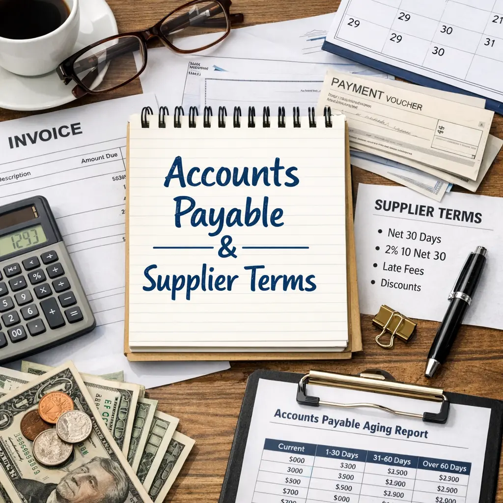 Supplier terms are the payment conditions a supplier offers (for example, net 30 or 2/10 net 30). They determine when you must pay, whether discounts apply, and they impact cash flow and supplier relationships.