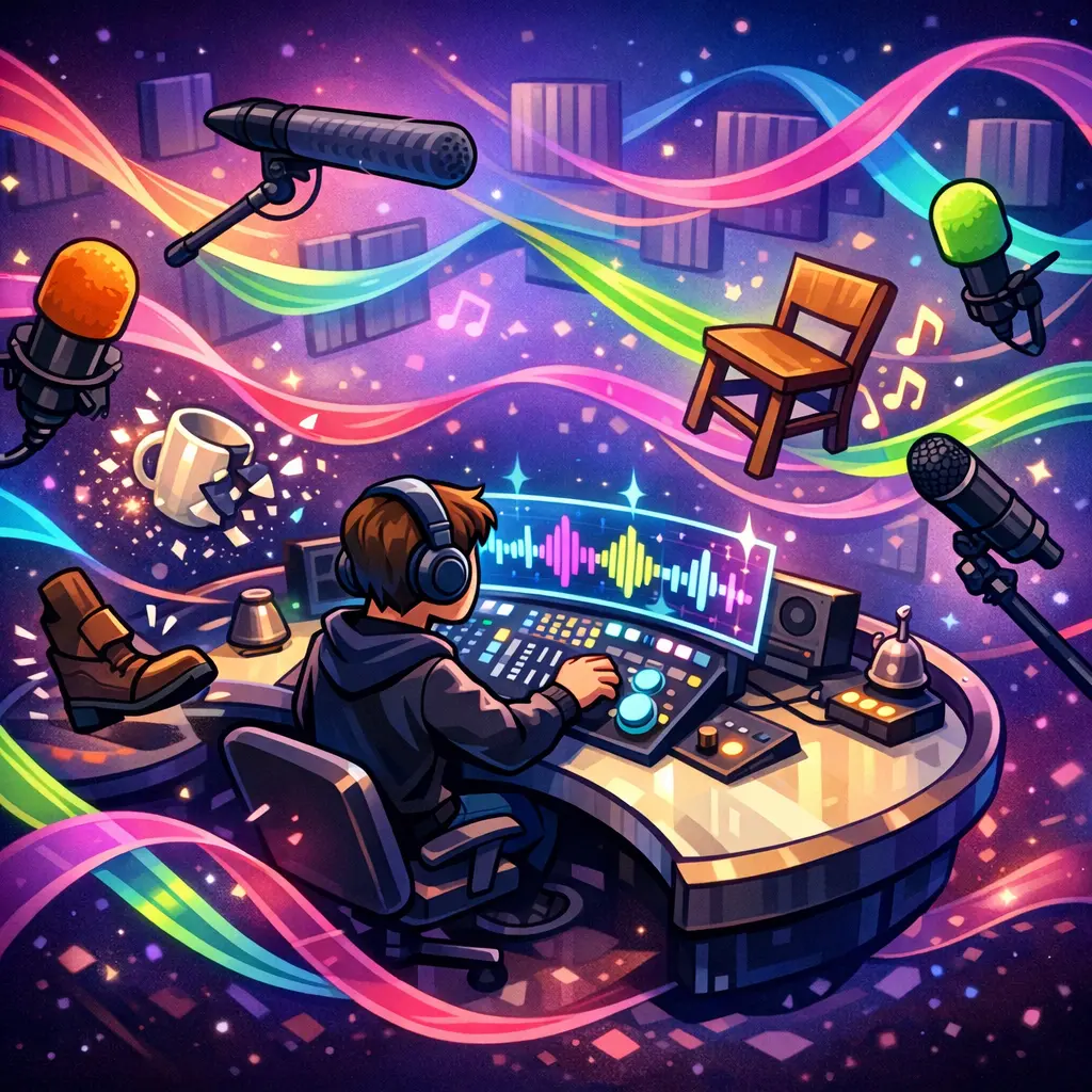 DAWs (e.g., Pro Tools), synthesizers/samplers, field recorders, Foley props, and plugins for EQ, compression, reverb, and spatial effects.
