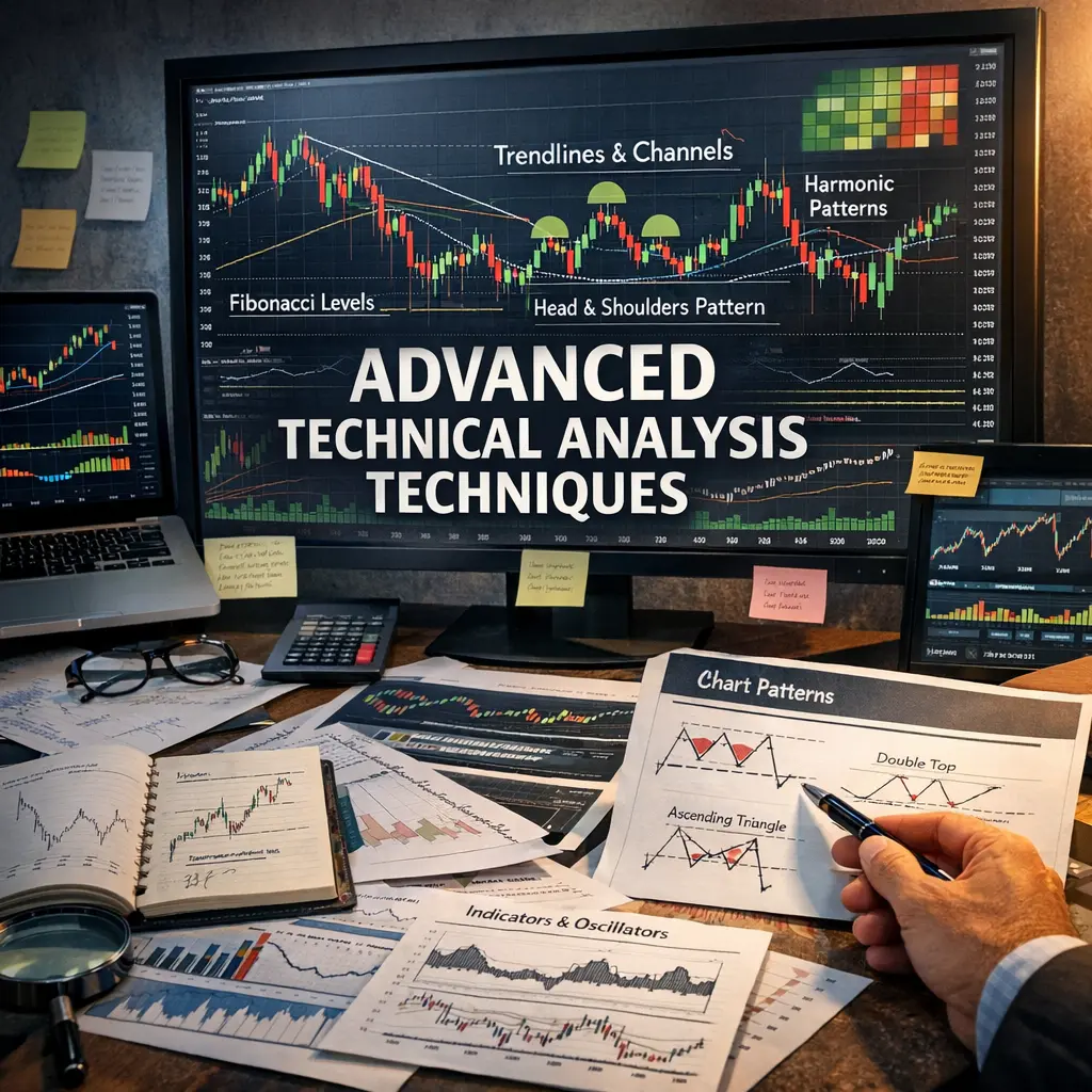 Which advanced chart patterns and indicators are commonly used, and how should they be interpreted?