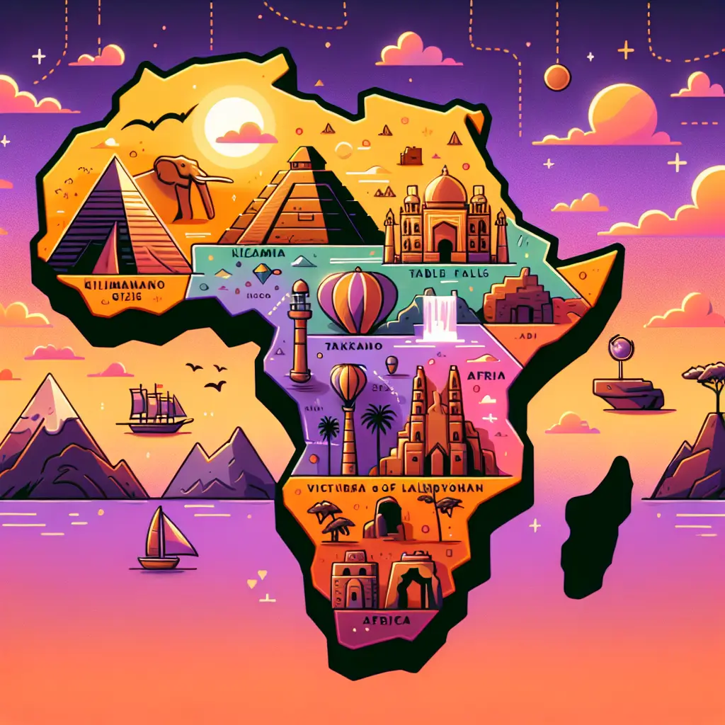 African Landmarks and Capital Locations refers to notable physical or cultural sites across the African continent, such as the Pyramids of Giza, Mount Kilimanjaro, or Victoria Falls, as well as the cities that serve as administrative or political centers for each country, like Cairo, Nairobi, or Abuja. These landmarks and capitals are significant for their historical, cultural, and geographical importance, attracting tourism and representing national identity.