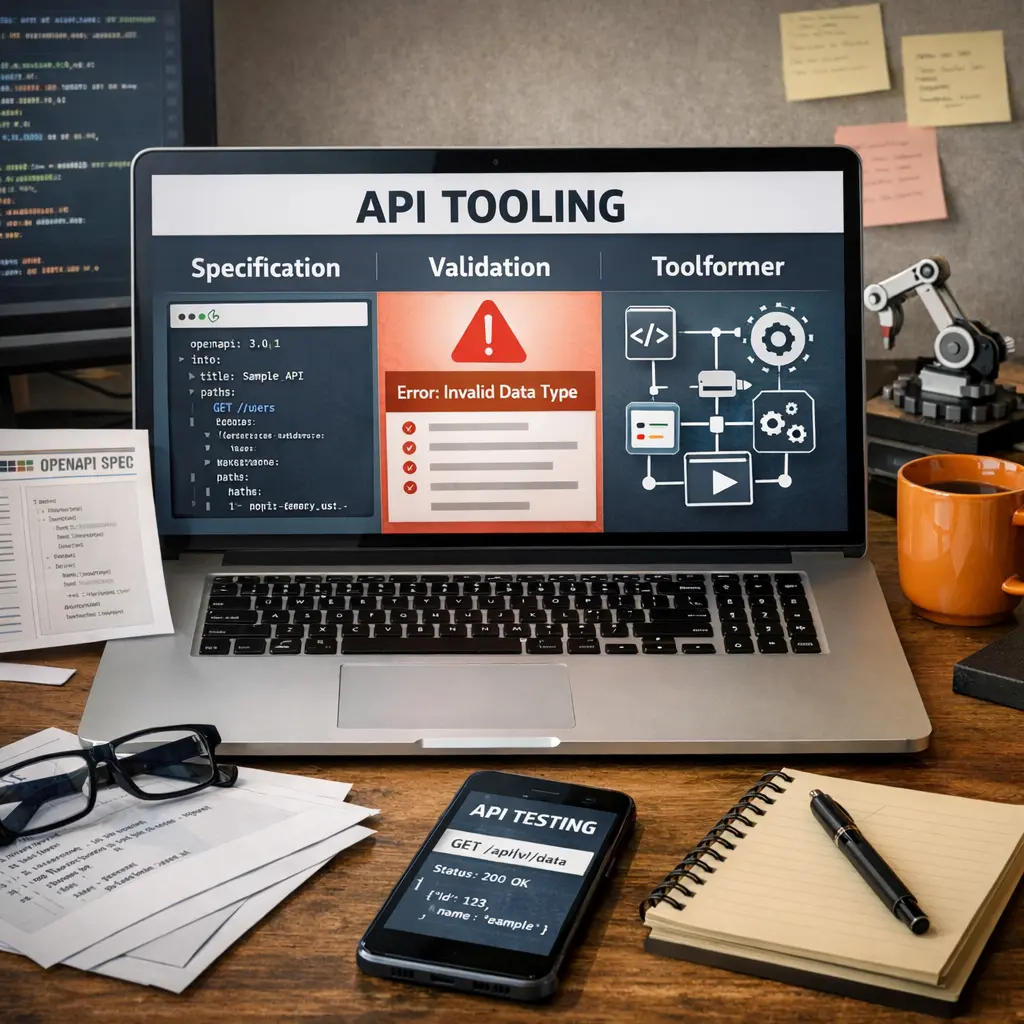 API Tooling encompasses the processes and technologies used to define (Specification), ensure correctness (Validation), and automate the use (Toolformer/Agent Architecture) of APIs. Specification involves creating formal definitions for APIs, while Validation checks for compliance with these definitions. Toolformer or Agent Architecture refers to intelligent agents that leverage and orchestrate APIs dynamically, enabling automated decision-making and task execution by interacting with various API endpoints efficiently and reliably.