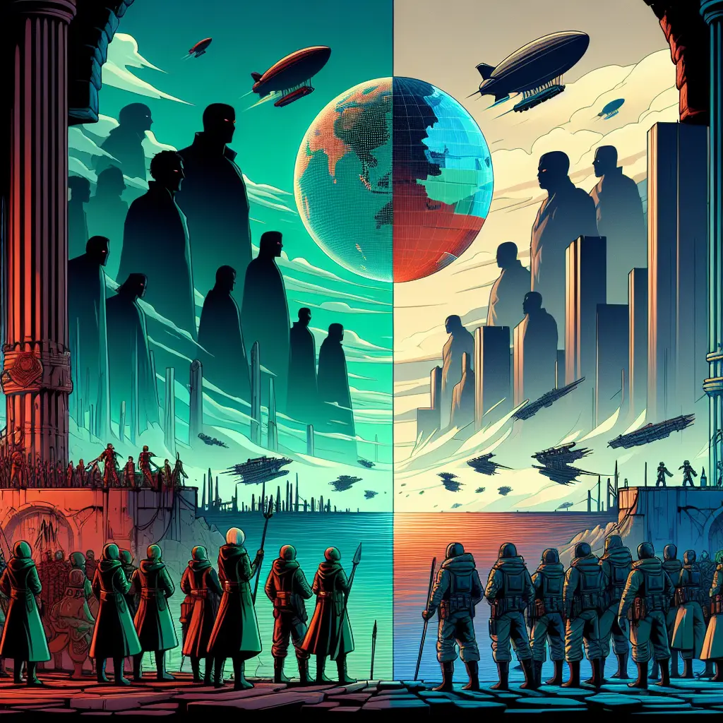"Attack on Titan" explores the intense power struggle between Eldia and Marley, two nations with a long history of conflict rooted in the control of Titans. Eldia, oppressed and isolated, seeks freedom, while Marley exploits Titan power for global dominance. The series delves into themes of propaganda, discrimination, and shifting alliances, illustrating how global politics, fear, and historical grievances shape the destinies of nations and individuals within this complex, war-torn world.