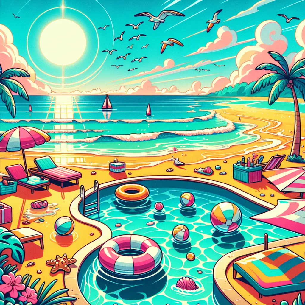 The warmer months when people visit beaches and pools to relax, swim, sunbathe, and enjoy water activities.