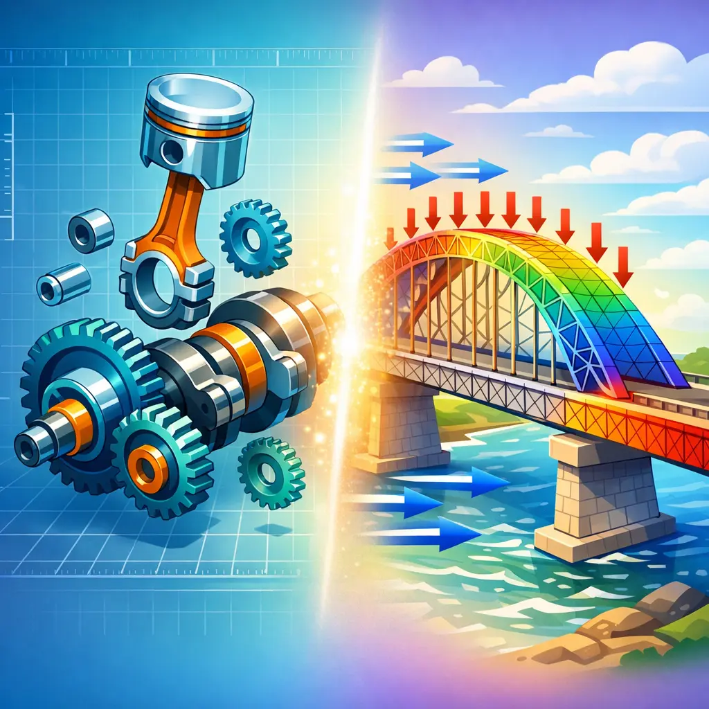 Meshing divides the geometry into elements; a good mesh captures stress/field gradients while balancing accuracy and compute cost. Refine where needed.