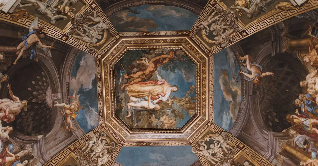 Which major themes or scenes are depicted on the ceiling?