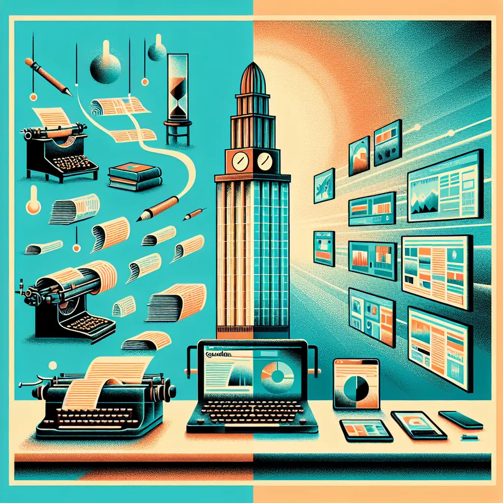 The Guardian's shift from a print-first approach to a digitally focused platform, involving digital journalism, a redesigned website, and new funding strategies.