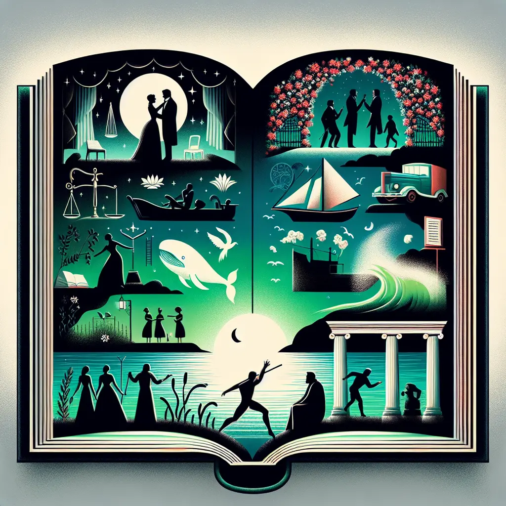 Brief plot summaries, key characters, and essential themes for renowned novels, plus explanations of the core concepts behind each work.