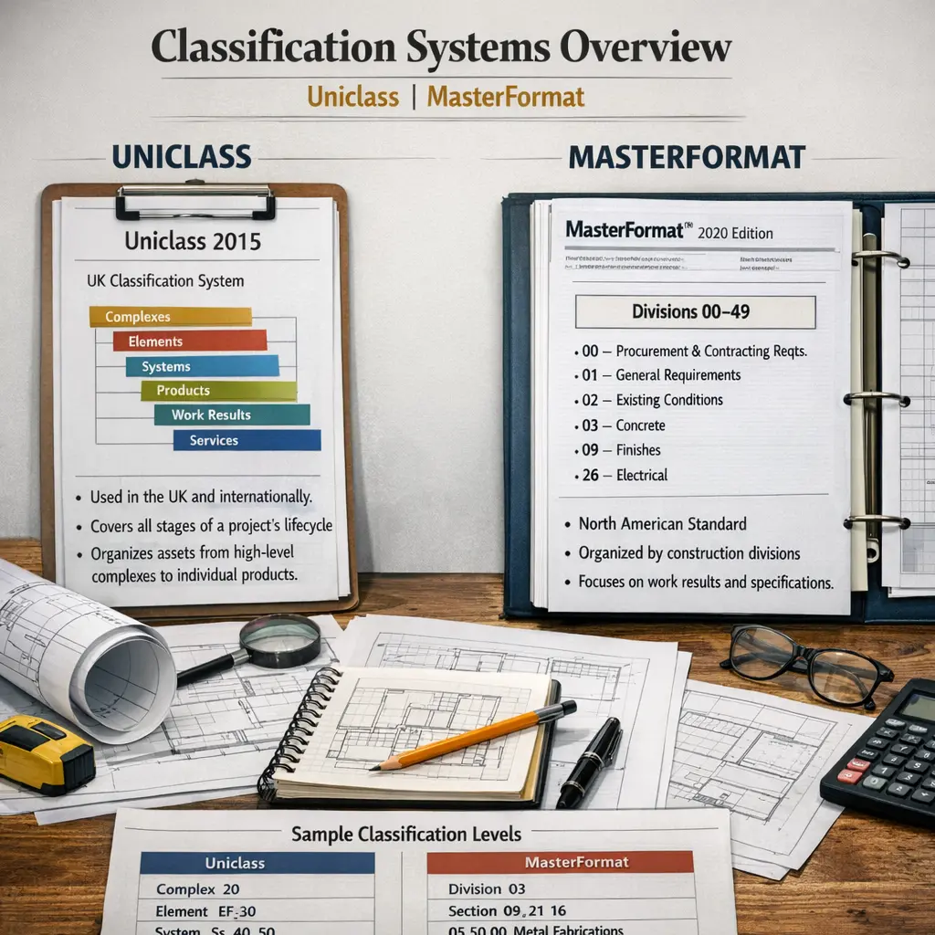 Classification systems like Uniclass and MasterFormat organize construction information into structured categories, enabling efficient communication, documentation, and management throughout a project’s lifecycle. Uniclass is widely used in the UK, providing a unified structure for all construction sectors, while MasterFormat is prevalent in North America, focusing on specifications and work results. Digital applications leverage these systems to streamline data exchange, enhance collaboration, and support Building Information Modeling (BIM) in construction projects.