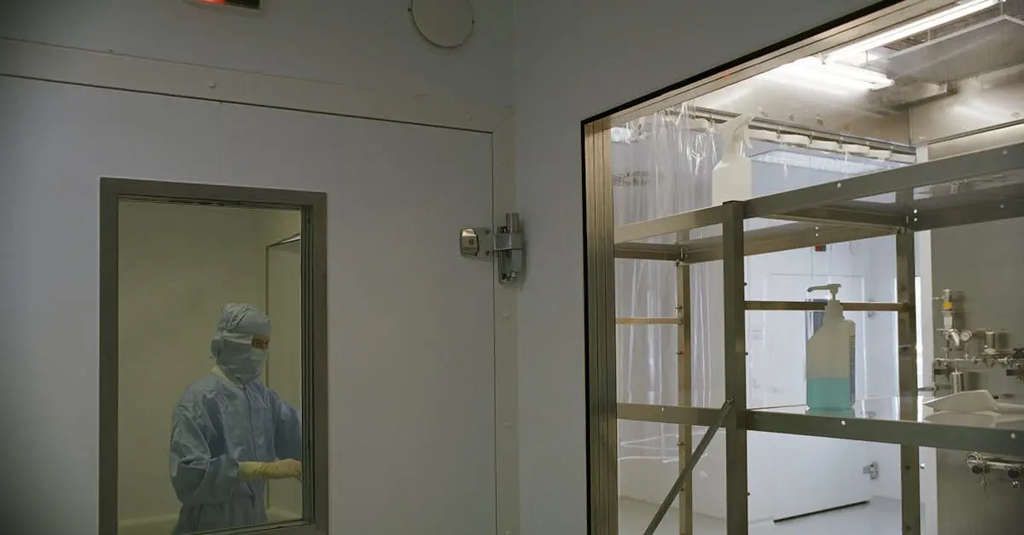 Smooth, cleanable surfaces (stainless steel, epoxy); seamless floors; properly sealed walls and penetrations; dedicated HVAC with HEPA/ULPA filtration; controlled pressure, airflow patterns, and sufficient air changes per hour; anterooms and pass-throughs; and validated installation.