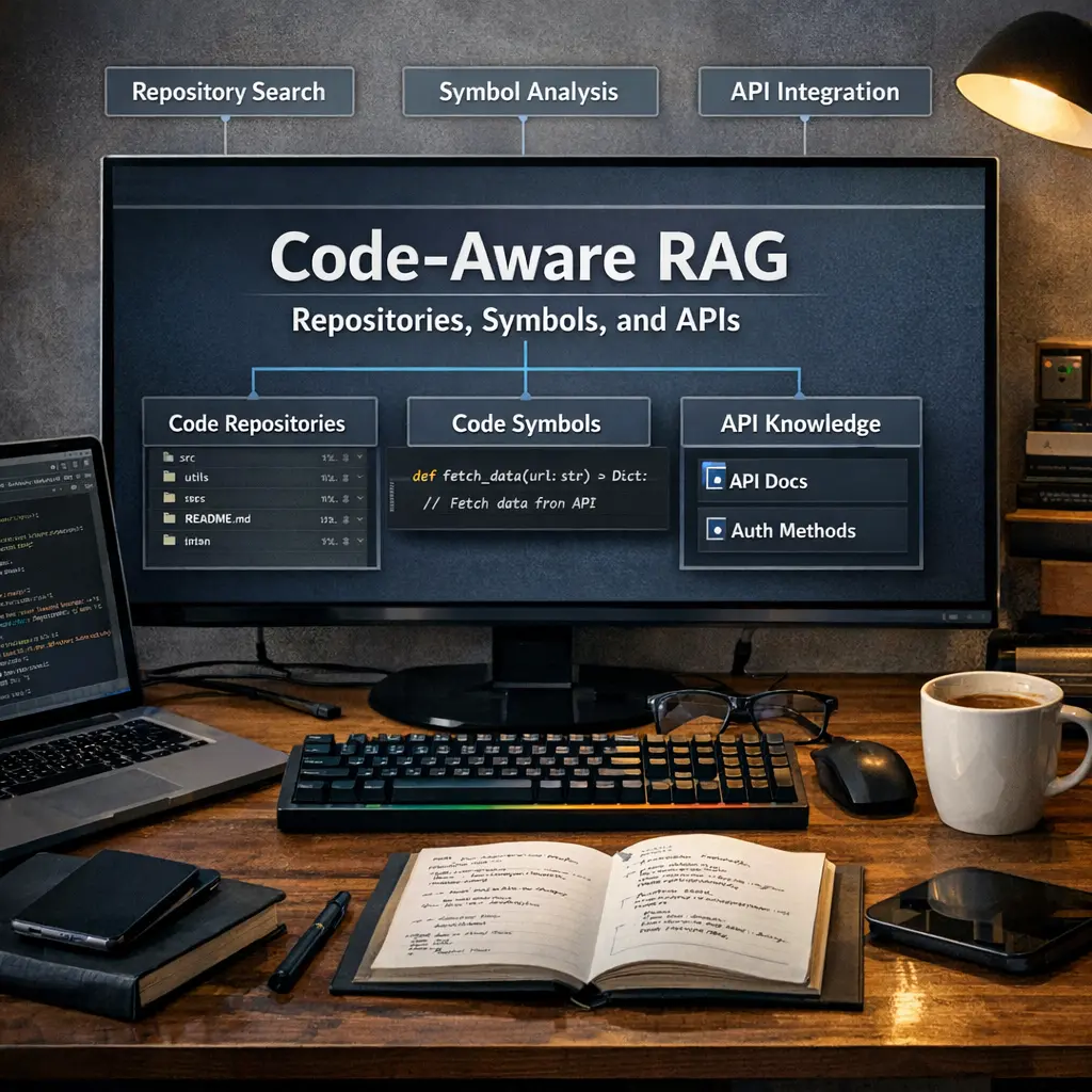 Code-Aware RAG enhances Retrieval-Augmented Generation by integrating code-specific knowledge, focusing on repositories, symbols, and APIs. It enables language models to retrieve and utilize relevant code snippets, documentation, and symbol definitions from large codebases. This approach improves code understanding, generation, and reasoning, allowing models to answer technical queries, suggest code completions, and provide accurate API usage by leveraging structured code data and contextual information during generation.