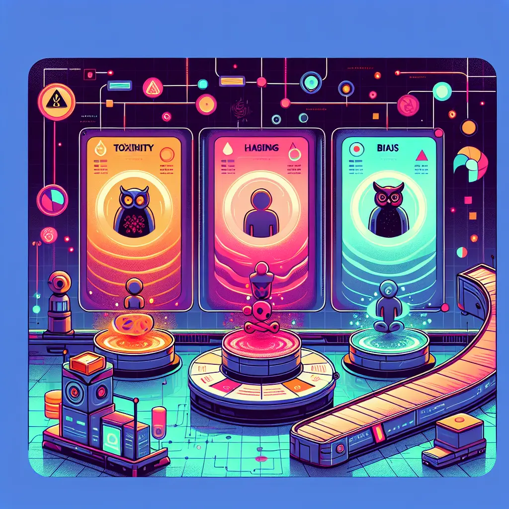 Systematic methods to assess digital content for harmful elements such as toxicity and bias, using guidelines, metrics, and processes to detect and mitigate unsafe output.