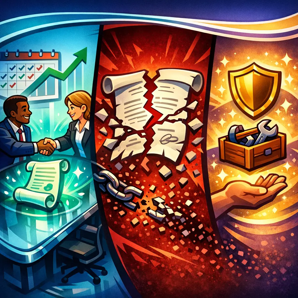 A breach is a failure to perform a contractual duty, either by not doing it at all, doing it late, or not in the required manner. Breaches can be material or minor.