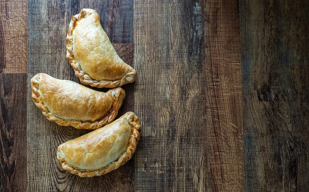 A traditional savory pastry from Cornwall filled with beef, potatoes, turnips (swede), and onions, wrapped in a golden crust and designed to be eaten by hand.