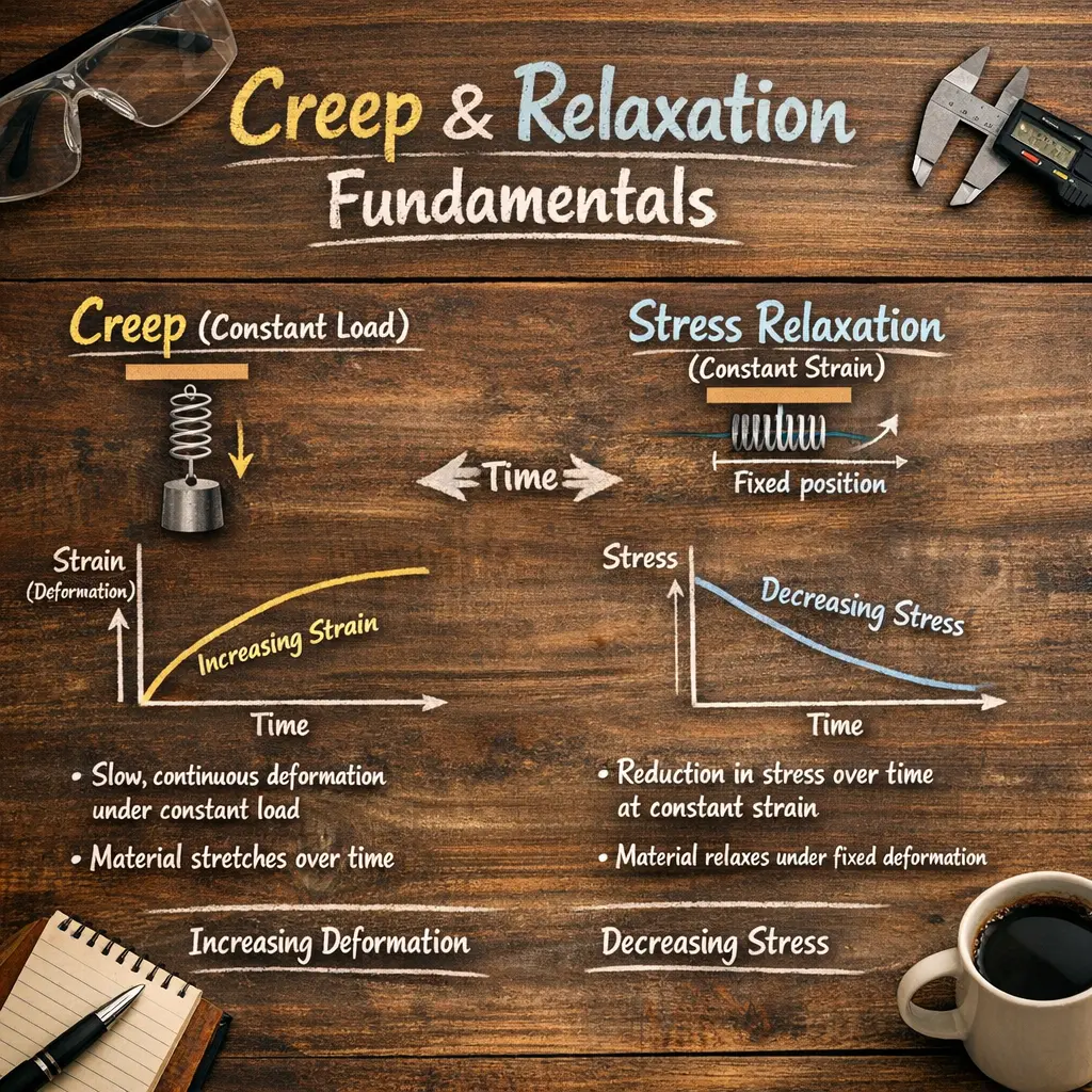 Creep and relaxation are fundamental concepts in materials science, describing how materials respond to stress over time. Creep refers to the slow, permanent deformation that occurs when a material is subjected to a constant load for an extended period, especially at high temperatures. Relaxation, on the other hand, describes the gradual decrease in stress experienced by a material under constant strain. Both phenomena are critical for predicting material performance and longevity in engineering applications.