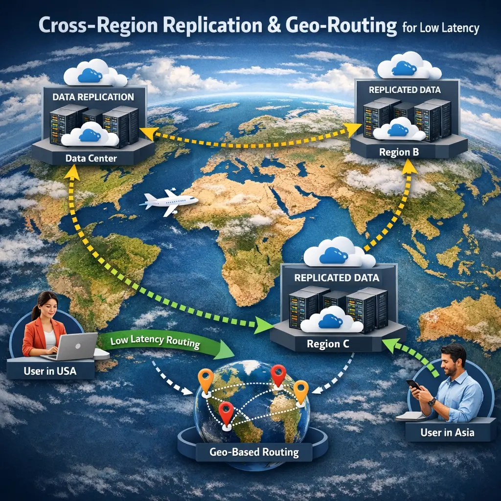 Cross-Region Replication and Geo-Routing for Low Latency in Retrieval-Augmented Generation (RAG) refers to distributing and synchronizing data or models across multiple geographic regions. This setup ensures that user queries are routed to the nearest server, reducing response times. By replicating retrieval and generation resources globally and using geo-routing, RAG systems can deliver faster, more reliable access to relevant information, enhancing user experience regardless of location.