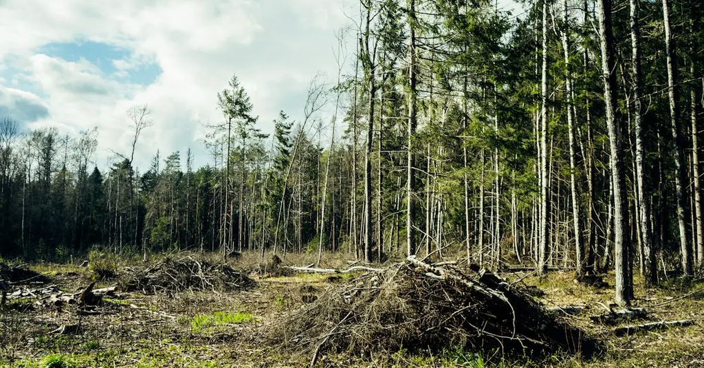 Deforestation is the large-scale removal of forests, often for agriculture, urban development, or logging.