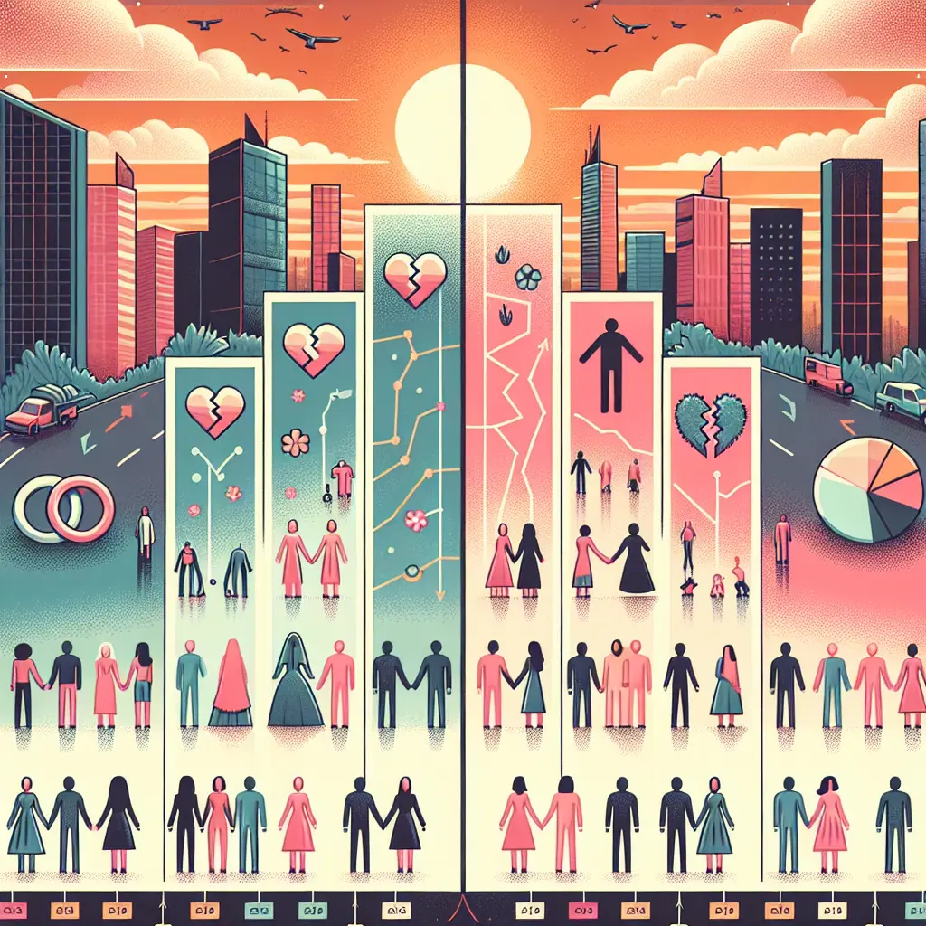 The demography of marriage and divorce trends examines patterns and statistical data related to how people marry and separate over time. It explores factors such as age at first marriage, marriage rates, divorce rates, and variations across regions, cultures, and socioeconomic groups. These trends reveal shifting social norms, changing family structures, and the influence of economic, educational, and legal factors on relationships, helping policymakers and researchers understand the evolving dynamics of modern society.