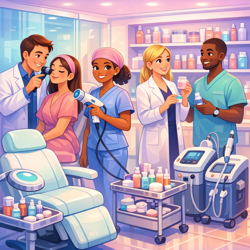 What are common career paths in dermatology and aesthetic medicine?