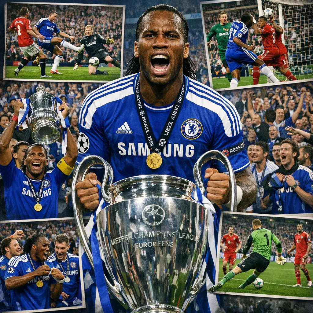 Drogba scored the late equalizer against Bayern Munich and then converted the decisive penalty in the shootout to seal Chelsea's title.
