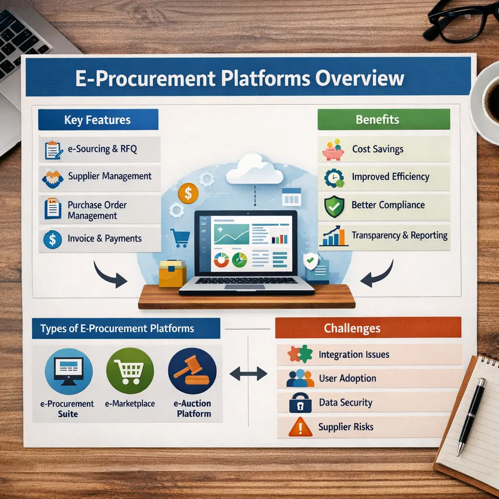E-Procurement platforms are digital solutions that streamline and automate the purchasing process for goods and services in organizations. These platforms facilitate the entire procurement lifecycle, from tender announcements and supplier registration to bid submission, evaluation, and contract management. By centralizing procurement activities, they enhance transparency, reduce manual errors, and promote cost savings. E-Procurement platforms also enable real-time tracking, compliance monitoring, and improved supplier collaboration, making procurement more efficient and competitive.