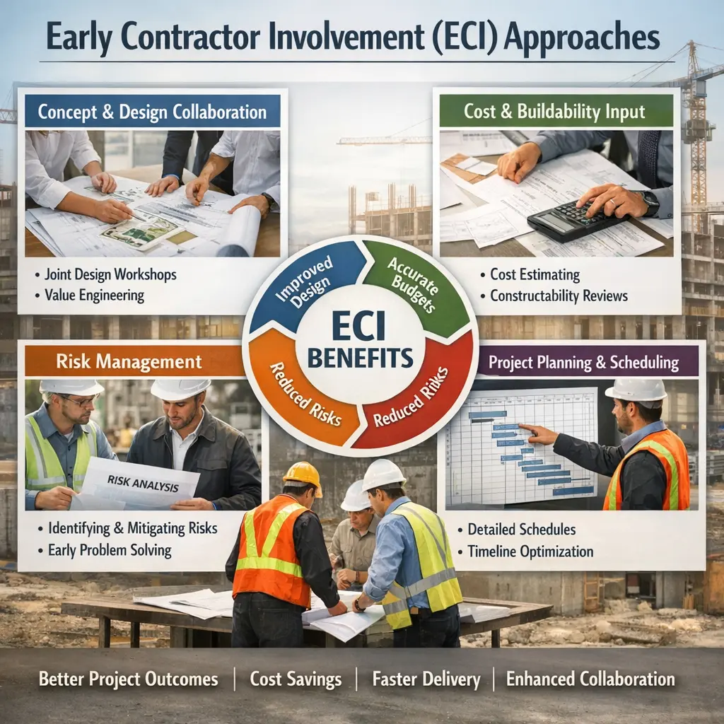 ECI is most valuable on complex or fast-tracked projects, where early input from the contractor can improve design quality, schedule, and cost outcomes, and where a collaborative, risk-sharing approach is feasible.