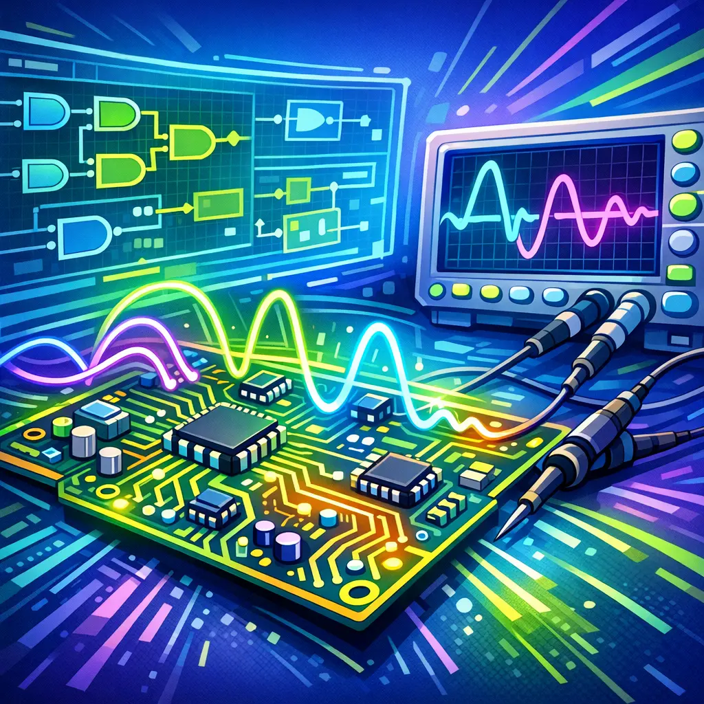 An oscilloscope displays how a signal varies over time, showing waveform shape, amplitude, frequency, timing, and noise. It’s essential for debugging, timing analysis, and validating signal integrity.