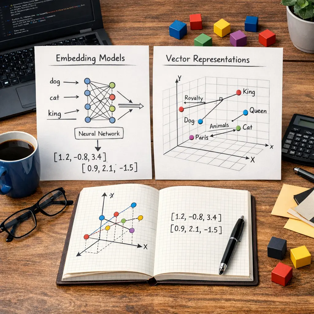 Embedding models transform text or data into numerical vectors that capture semantic meaning, enabling machines to understand relationships between concepts. In Retrieval-Augmented Generation (RAG), these vector representations are used to efficiently search large knowledge bases for relevant information. The retrieved data is then combined with generative models to produce more accurate and contextually rich responses, enhancing the performance of AI systems in tasks like question answering or information retrieval.