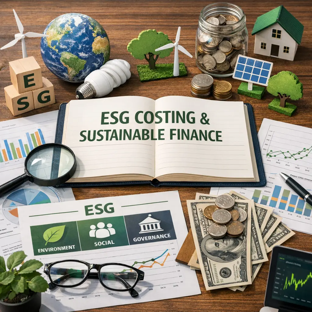 ESG Costing & Sustainable Finance refers to integrating Environmental, Social, and Governance (ESG) criteria into financial management and business practices. It involves assessing and allocating costs related to sustainability initiatives, ensuring that investments and operations align with ethical, environmental, and social standards. This approach aims to promote responsible resource use, reduce risks, and enhance long-term value by considering not just financial performance but also the broader impact on society and the environment.