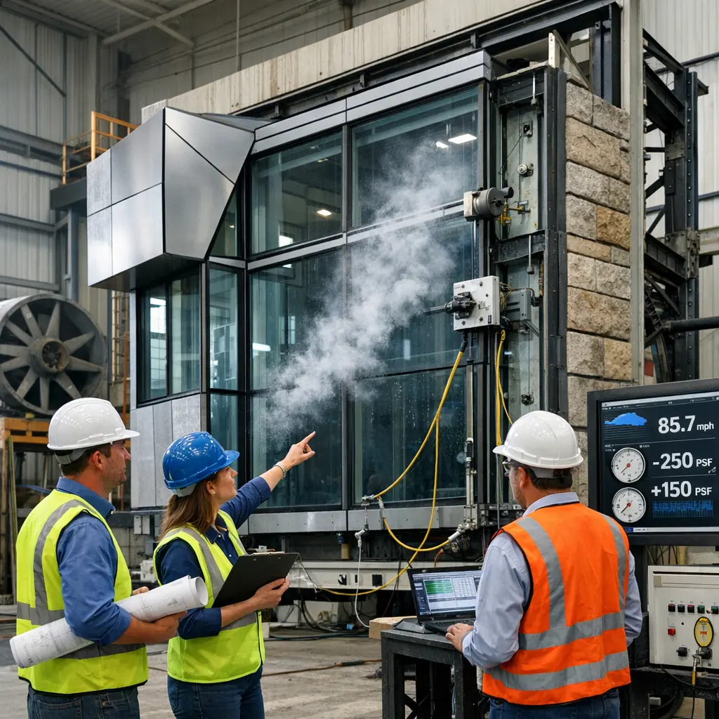 Tests often include water penetration, air leakage, wind load/pressure, thermal performance, condensation risk, and durability of joints and fasteners.