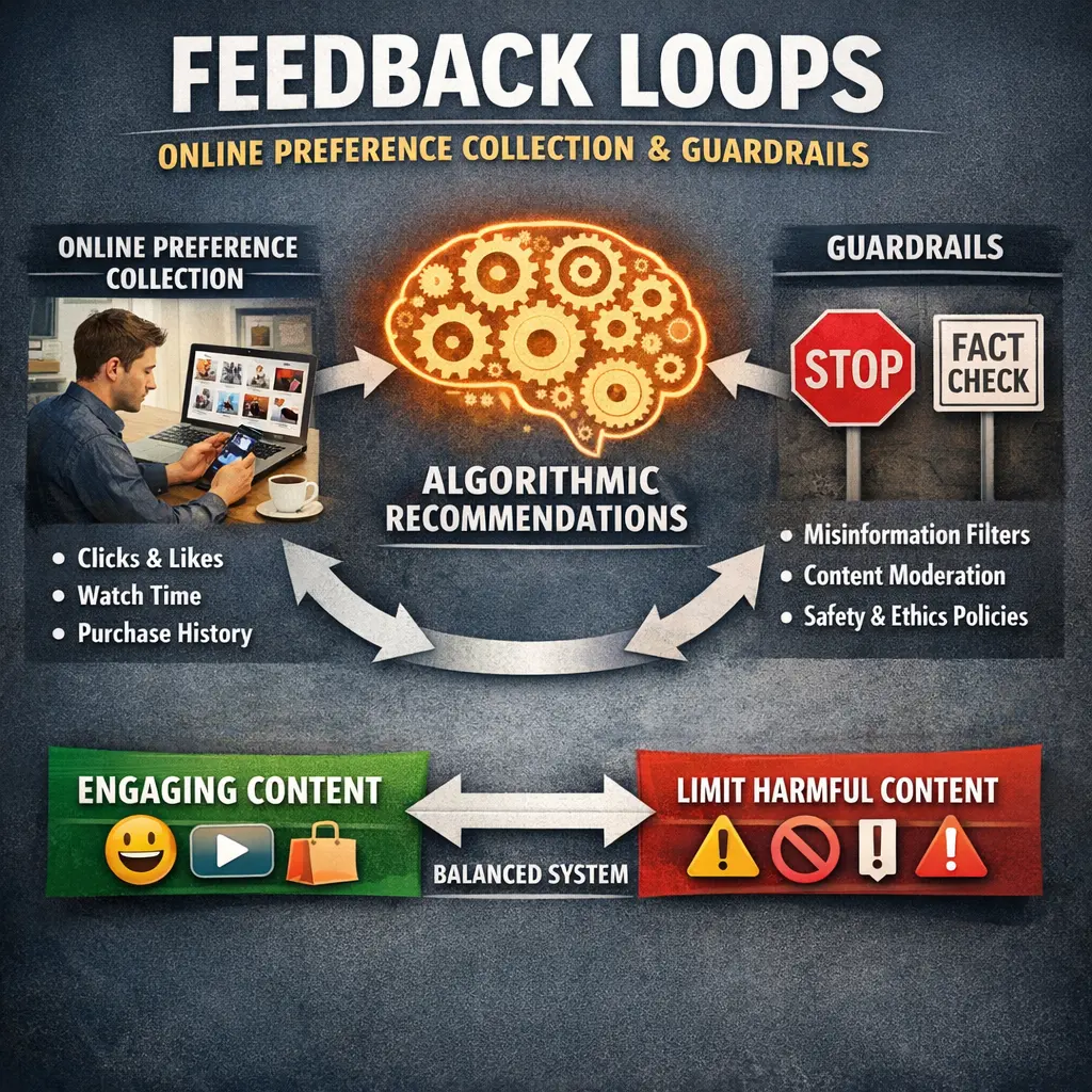 A mechanism where user input (preferences, actions) is collected and used to adjust future content or recommendations, which then influence subsequent user behavior.