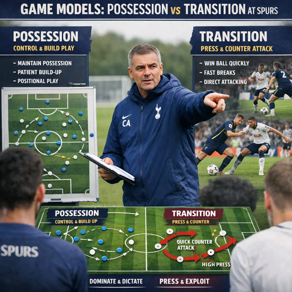Game models at Tottenham Hotspur F.C. contrast possession-based and transition-based approaches. The possession model emphasizes controlling the ball, patient build-up, and dictating tempo, often under managers like Mauricio Pochettino. In contrast, the transition model, seen under coaches like José Mourinho and Antonio Conte, prioritizes rapid counter-attacks, quick ball recovery, and exploiting opponents’ defensive disorganization. Spurs’ tactical identity often shifts between these styles depending on managerial philosophy and squad strengths.
