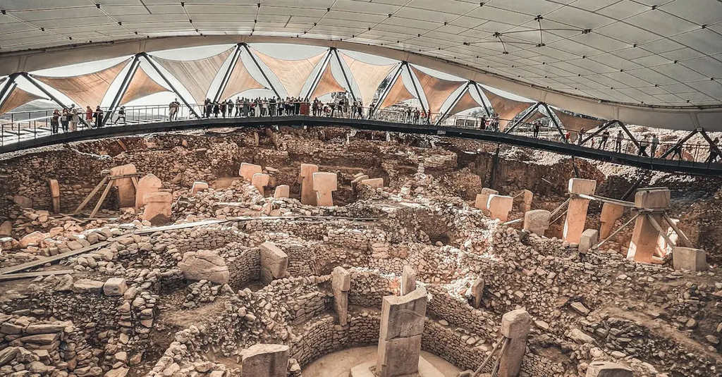 Göbekli Tepe is an archaeological site in southern Turkey, dating to around 9600 BCE, known for circular enclosures and massive carved pillars.