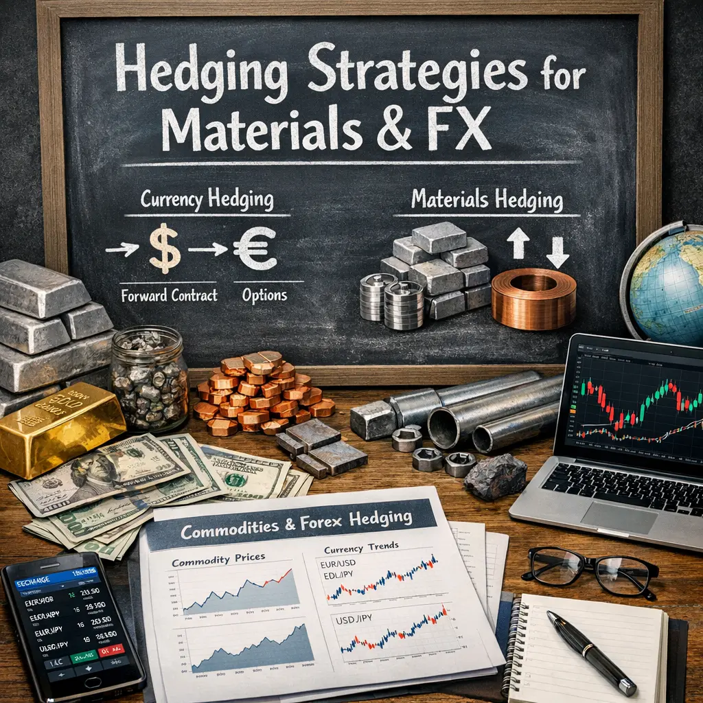 Hedging strategies for materials and foreign exchange (FX) involve using financial instruments or market tactics to protect a business from price volatility in raw materials and currency fluctuations. Common approaches include forward contracts, options, and swaps, which lock in prices or exchange rates. These strategies help companies stabilize costs, manage risks, and maintain predictable financial performance, ensuring smoother operations and safeguarding profit margins in a dynamic global market.