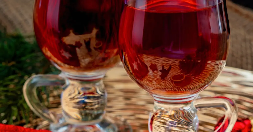 Red wine heated with spices (cinnamon, cloves, star anise) and citrus, often with a touch of sweetness.