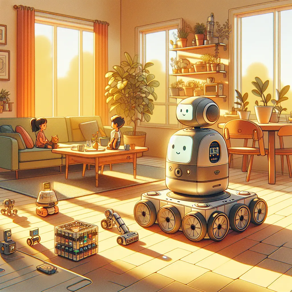 An integrated system that automates household tasks by combining hardware (like robotic arms or mobile bases) with software for navigation, task planning, and user interaction.