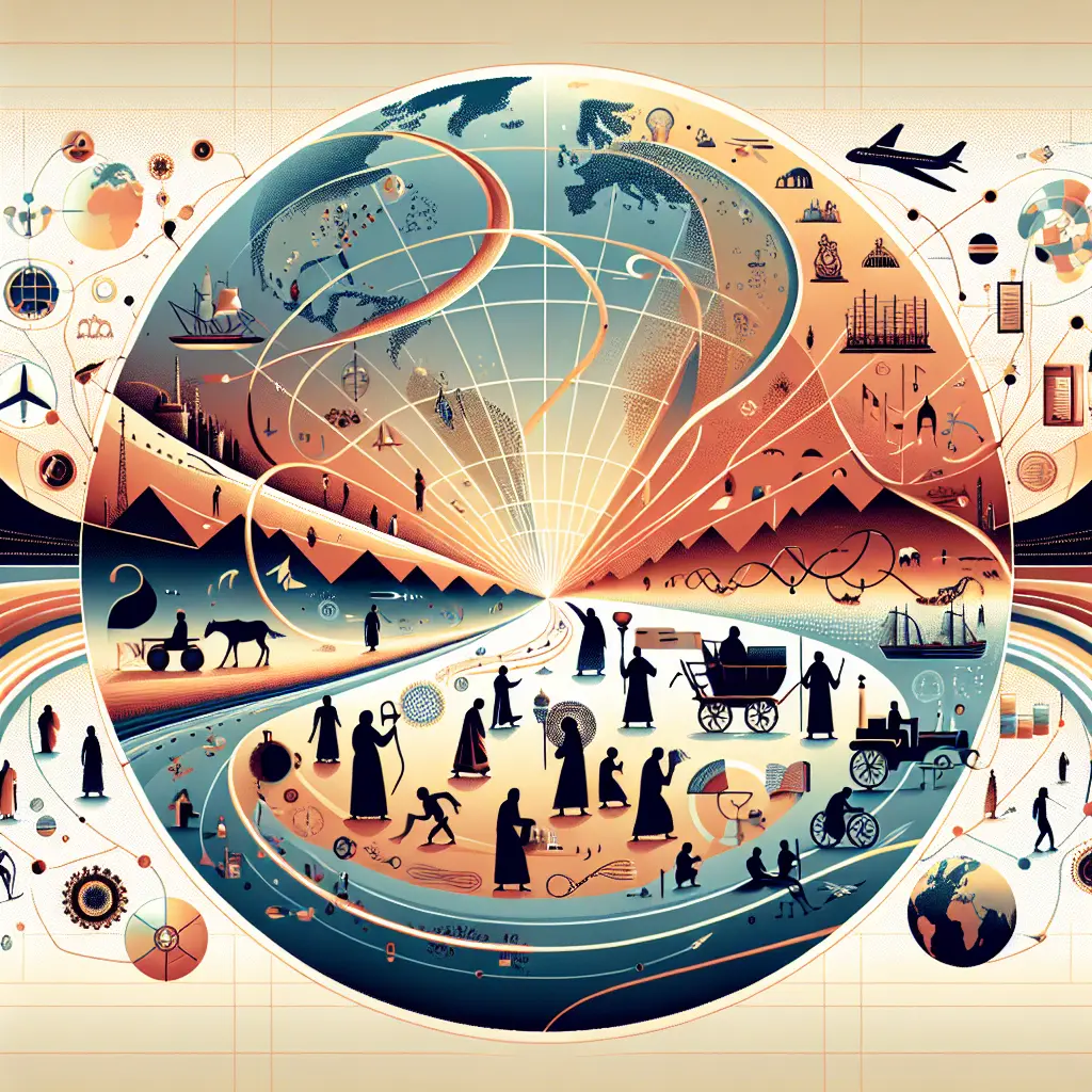 "Human Migration: Comparative & Cross-Disciplinary Connections" refers to the study of how and why people move across regions or countries, analyzed through multiple academic lenses such as history, sociology, economics, and geography. By comparing migration patterns and integrating insights from various fields, this approach uncovers the complex causes and effects of migration, highlighting similarities and differences across cultures, time periods, and contexts, and fostering a deeper understanding of global human movement.