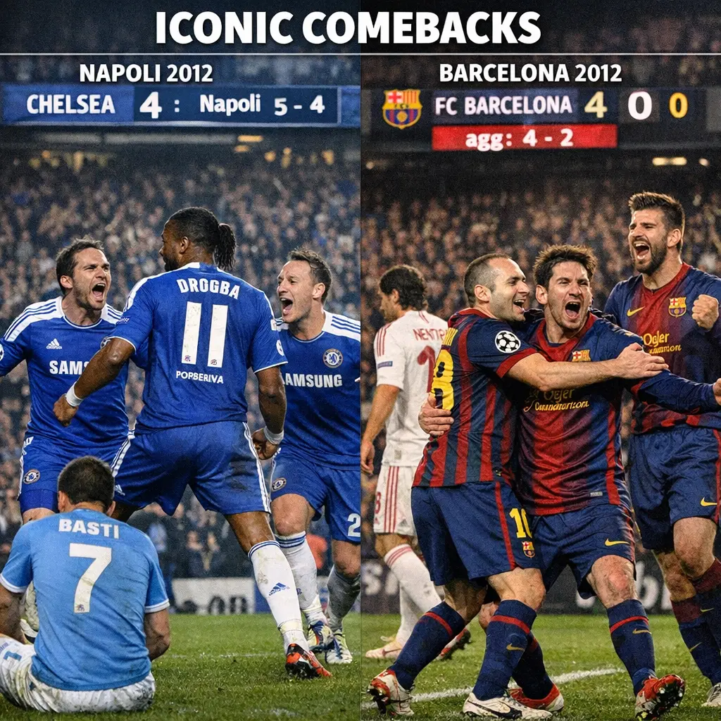 Why are Napoli 2012 and Barcelona 2012 considered iconic comebacks?