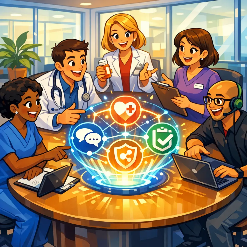 Teamwork combines diverse expertise with coordinated roles, shared goals, open communication, and mutual support to provide safer, more effective care.