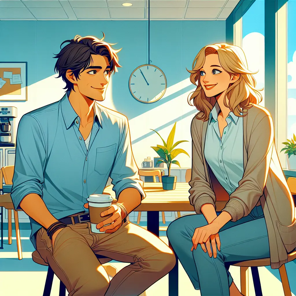 They move from close friends to a romantic partnership, featuring playful banter and heartfelt moments.
