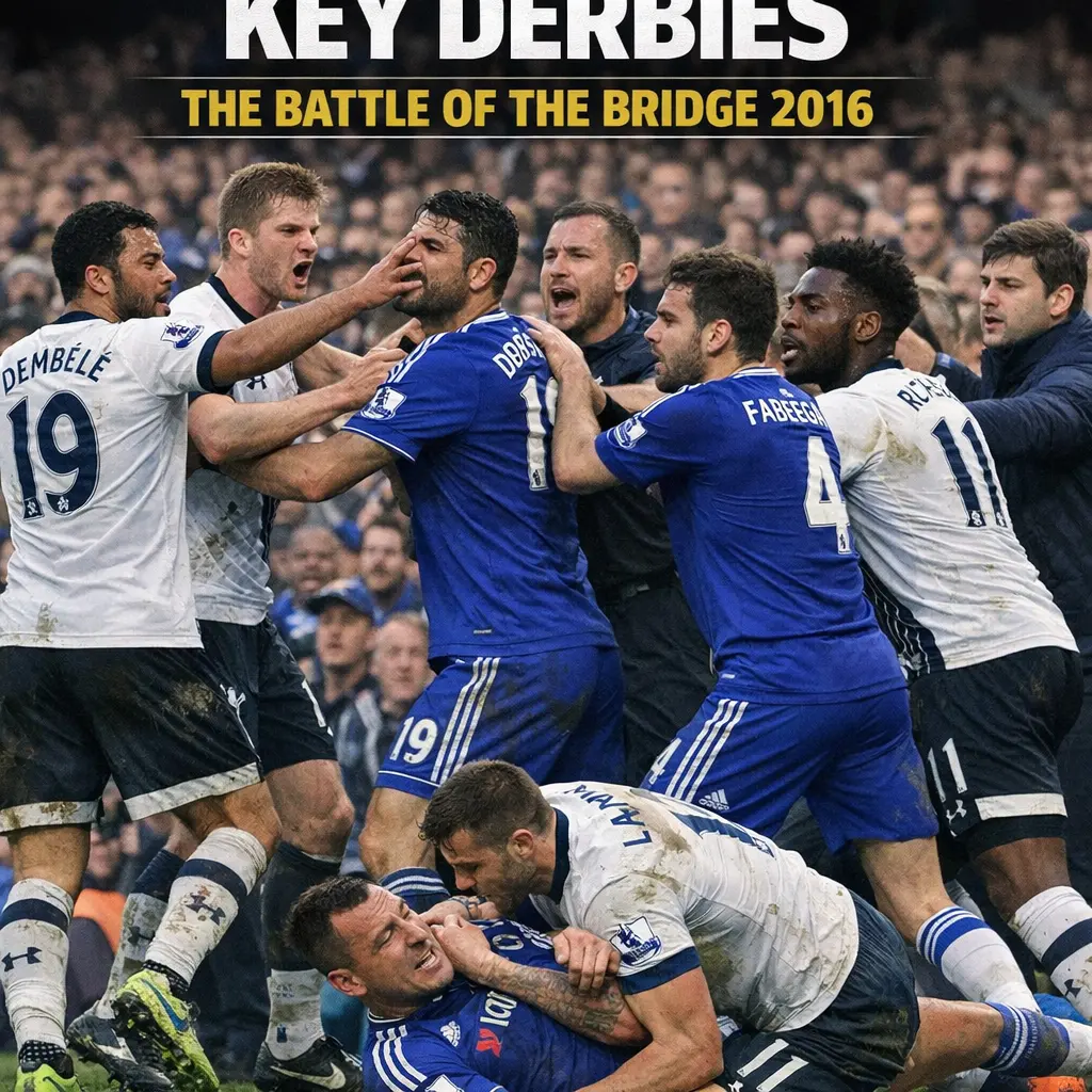 The "Battle of the Bridge" refers to the fiercely contested Premier League match between Chelsea and Tottenham Hotspur on May 2, 2016. Played at Stamford Bridge, the game ended 2-2, effectively ending Tottenham’s title hopes and confirming Leicester City as champions. The match was infamous for its intensity, aggressive tackles, and numerous yellow cards, reflecting the heated rivalry. Chelsea’s spirited comeback and the chaotic scenes cemented the match as a memorable derby in football history.
