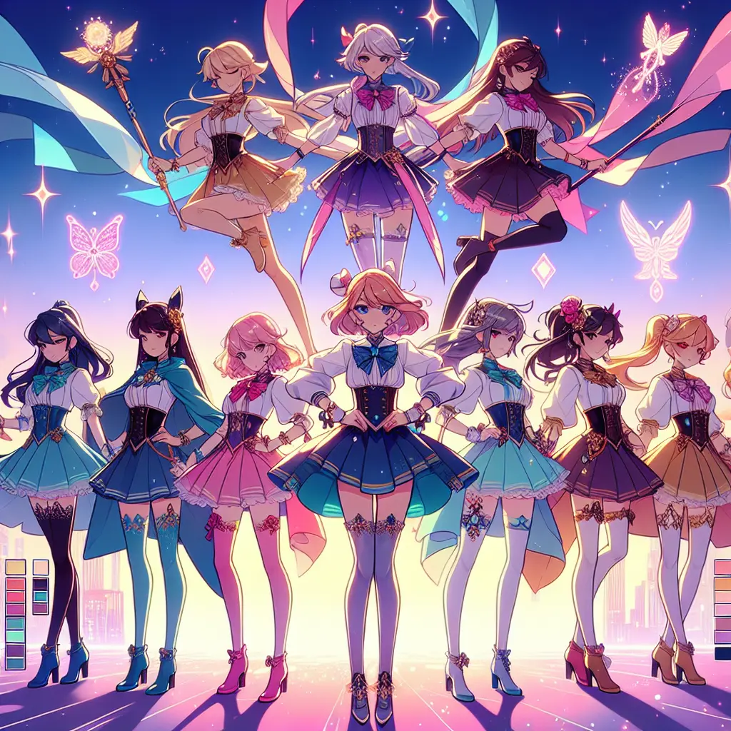 "Magical Girls & Teams" refers to a popular trope in anime and manga where young girls possess magical powers, often transforming with special items or phrases. These girls typically form close-knit teams, working together to fight evil, protect the world, and overcome personal challenges. The genre emphasizes friendship, teamwork, and personal growth, blending action, fantasy, and emotional storytelling. Iconic examples include "Sailor Moon" and "Pretty Cure," inspiring fans with themes of hope and empowerment.