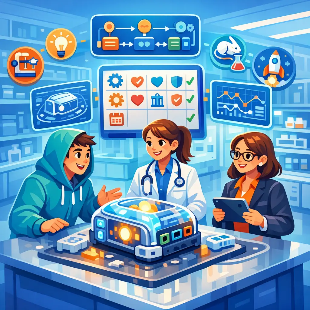 The end-to-end process of turning an idea into a safe and effective medical device, covering concept, design, testing, risk management, regulatory clearance, manufacturing, and post-market support.