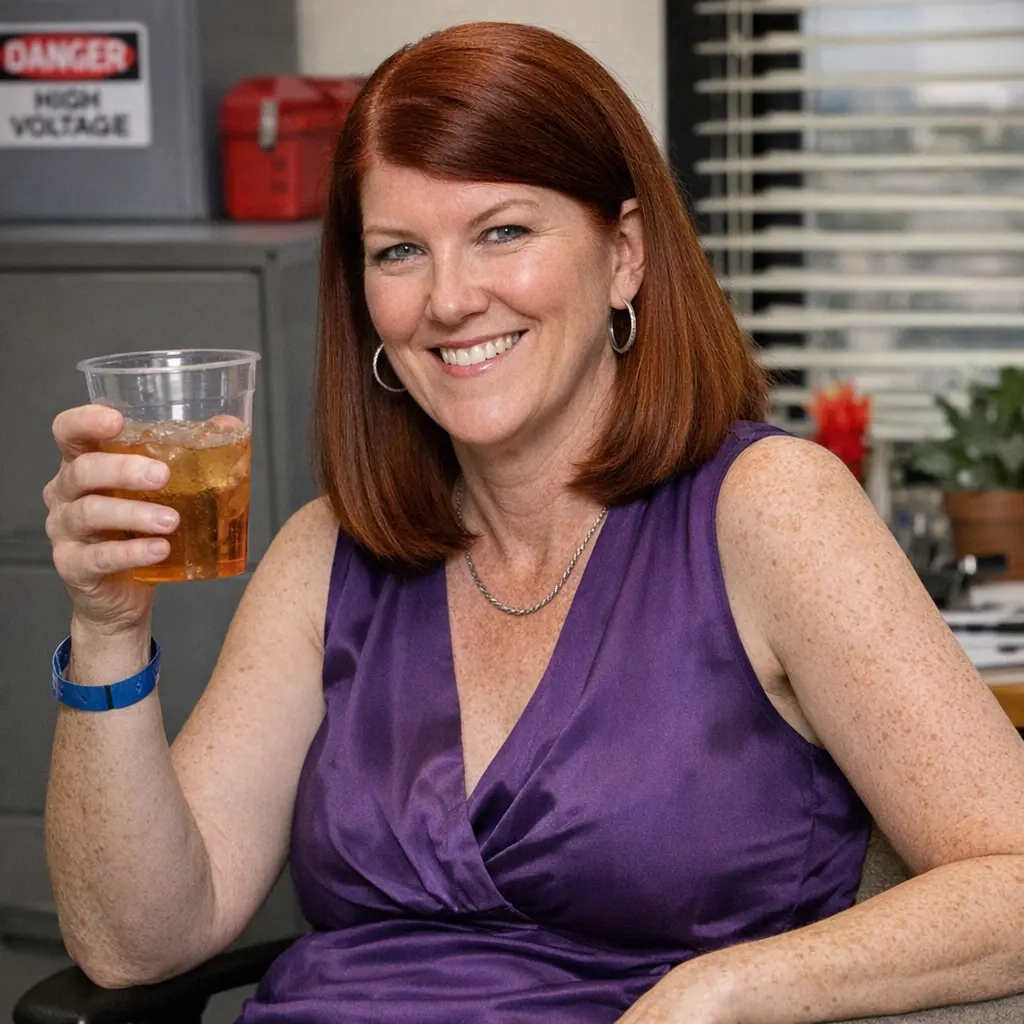 A fictional employee from The Office (US) on the Scranton branch of Dunder Mifflin, known for her blunt humor and party-loving personality, portrayed by Kate Flannery.