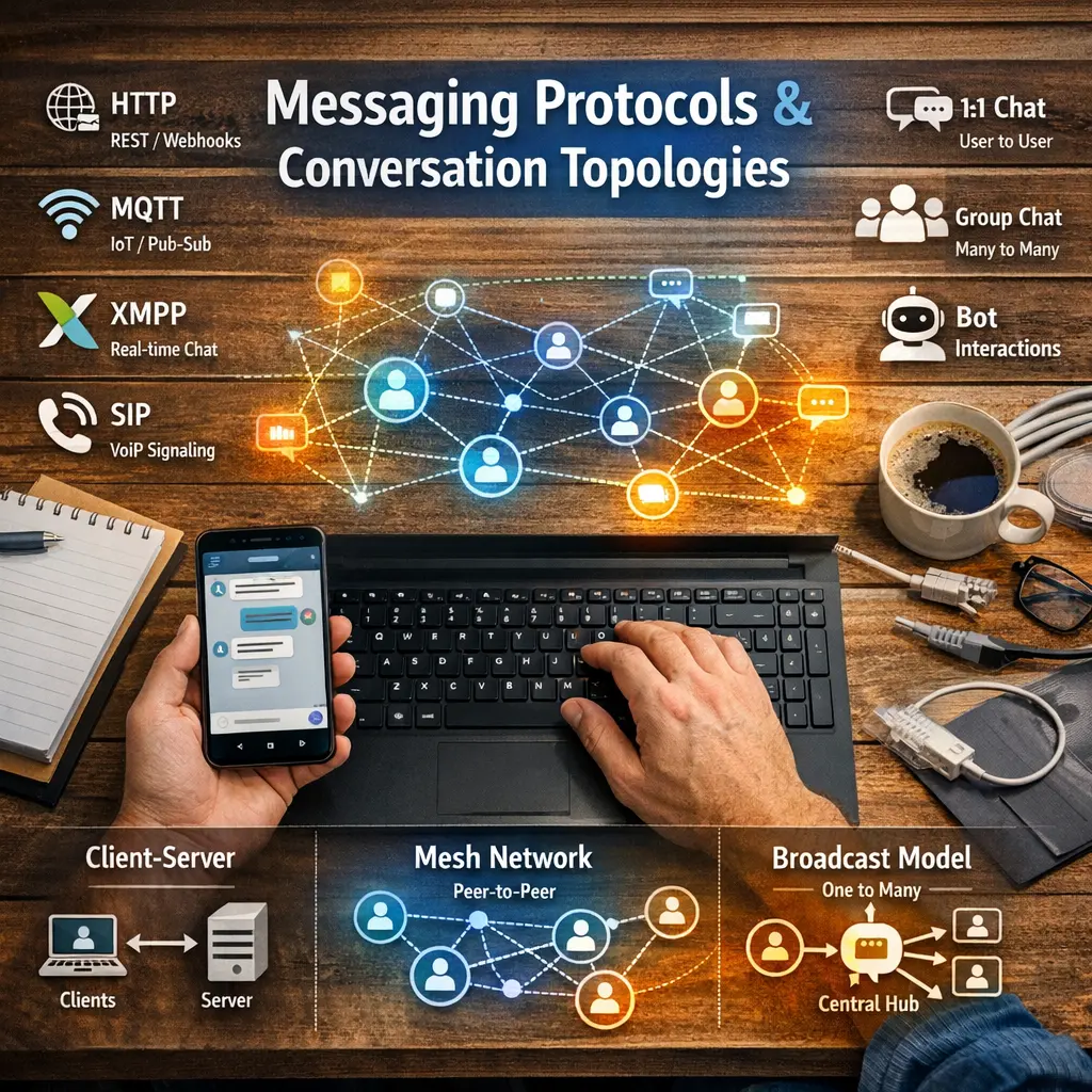 Messaging protocols and conversation topologies in agent architecture define how autonomous agents communicate and coordinate actions. Messaging protocols establish rules for message formatting, delivery, and interpretation, ensuring interoperability. Conversation topologies outline the patterns of interaction—such as one-to-one, one-to-many, or many-to-many—guiding how agents exchange information and collaborate. Together, they enable structured, reliable communication and efficient decision-making within multi-agent systems, supporting scalability and flexibility in distributed environments.