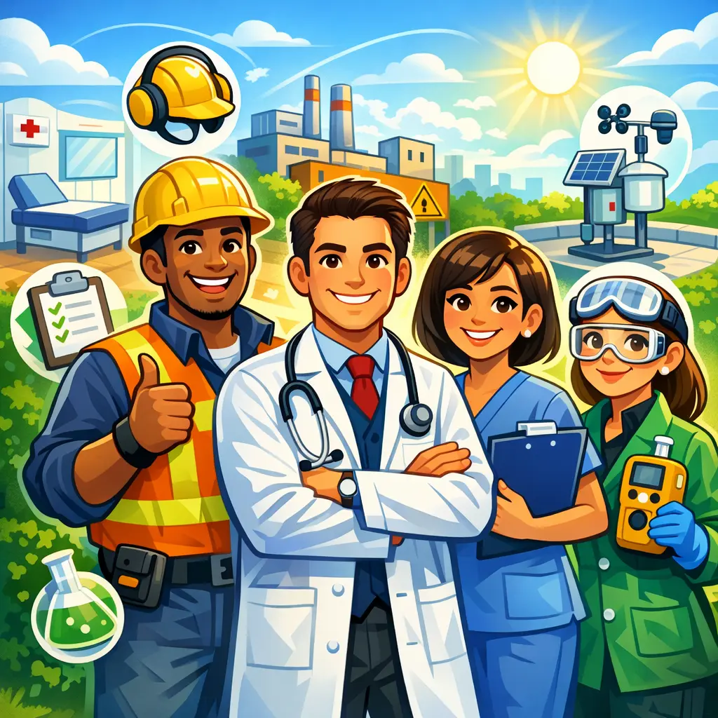 Physician occupational medicine doctors, industrial hygienists, environmental health scientists, safety professionals, and roles in public health, research, and regulatory agencies.