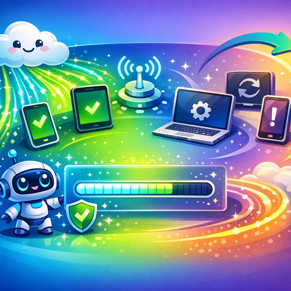 The device checks for updates, downloads the package, verifies integrity and authenticity, applies the update (often via a bootloader or separate partition), and reboots to run the new software.