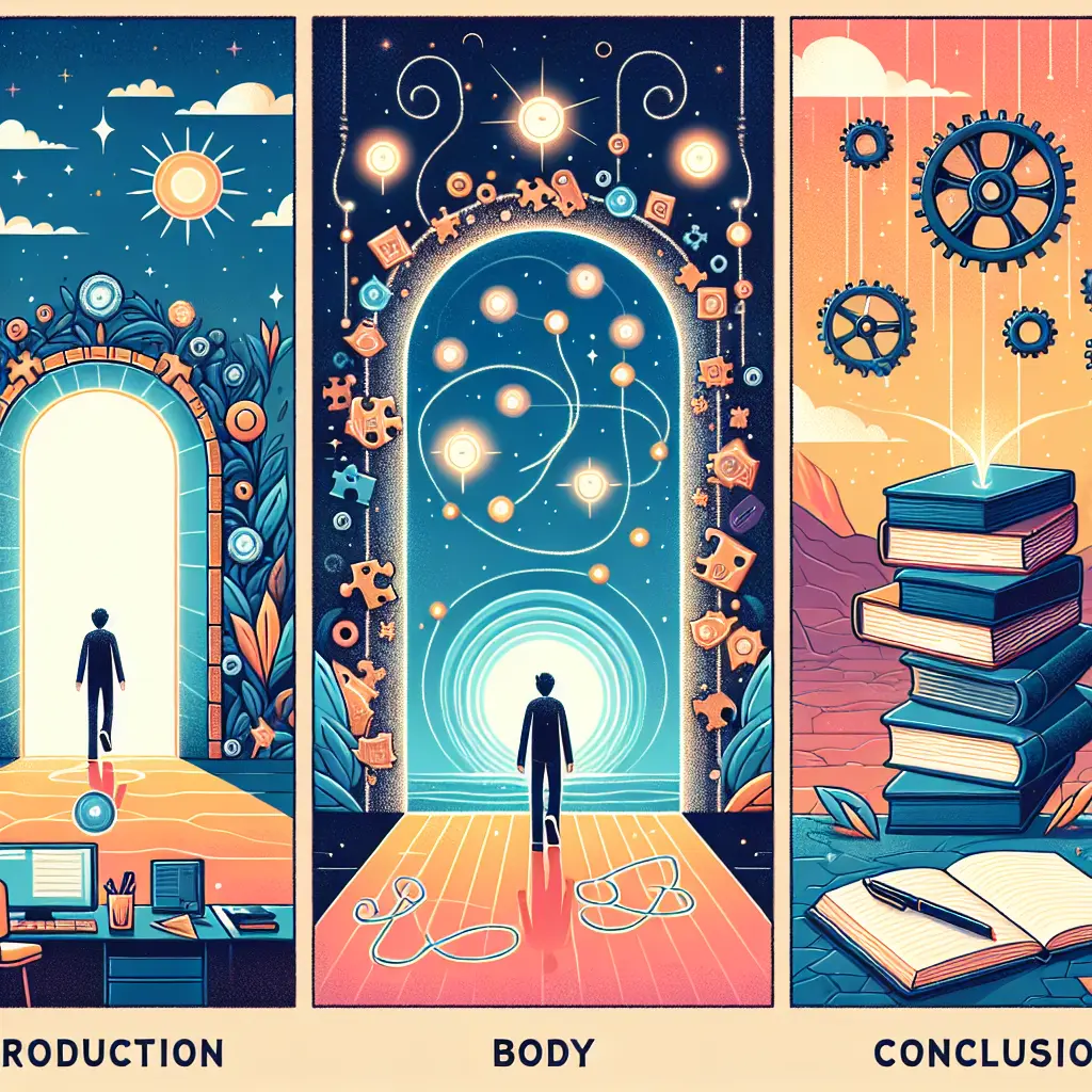 An essay is structured into three main parts: the introduction, body, and conclusion. The introduction presents the topic and outlines the essay’s purpose, capturing the reader’s attention. The body consists of several paragraphs, each developing a specific point or argument with supporting evidence. The conclusion summarizes the main ideas, restates the thesis in light of the discussion, and provides a final perspective, effectively closing the essay.