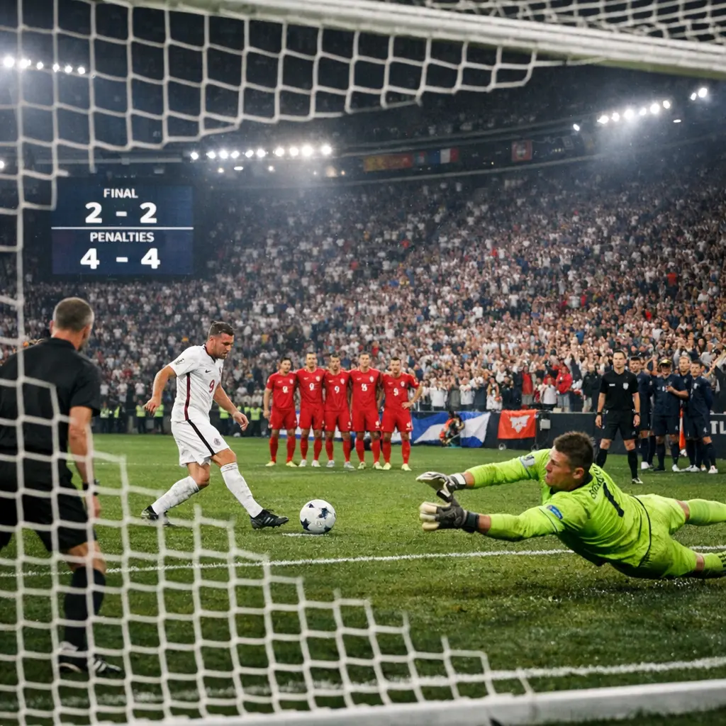 A method to decide a match when scores are level after extra time. Teams take turns attempting penalties from the penalty mark while a goalkeeper defends.