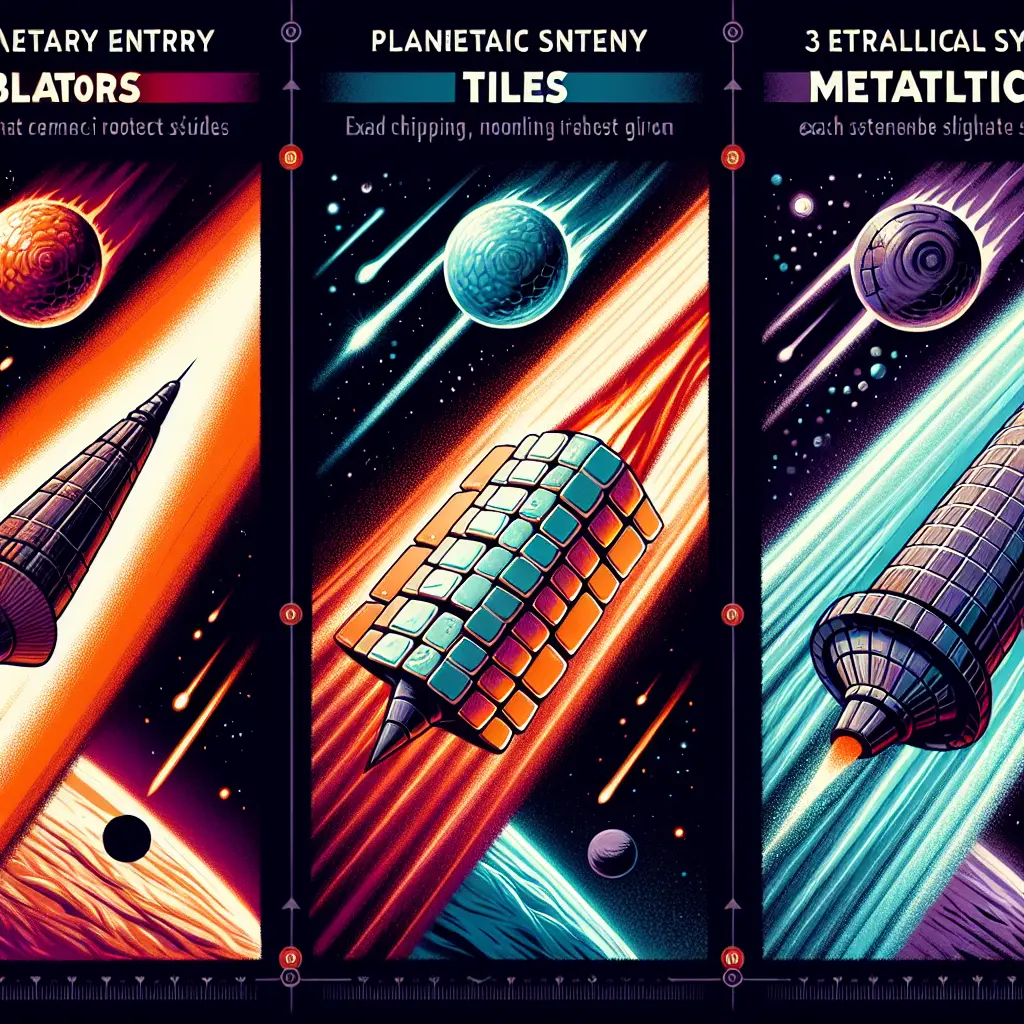 Planetary entry Thermal Protection Systems (TPS) shield spacecraft from intense heat during atmospheric entry. Ablators absorb and dissipate heat by charring and eroding, making them ideal for single-use missions. Tile-based TPS, like those on the Space Shuttle, are reusable ceramic blocks that insulate against heat but require careful maintenance. Metallic TPS uses heat-resistant metals, offering durability and ease of inspection, but can be heavier and less insulating than other options. Each type balances reusability, weight, and thermal performance.