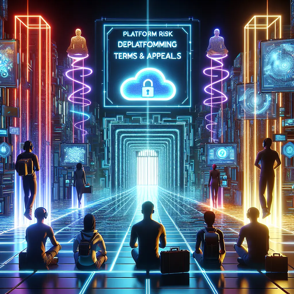 Platform risk refers to the potential negative consequences users face when relying on digital platforms, such as social media or marketplaces. Deplatforming is the removal or banning of users, often due to violations of terms of service. These terms are the rules set by platforms governing user behavior. Appeals are processes allowing users to contest decisions like bans, but outcomes can be unpredictable, highlighting the vulnerability of users to platform policies and enforcement.